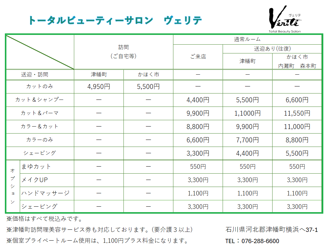当店では一般の理美容院を利用することが困難な方へ訪問カットや送迎サービスをしております。